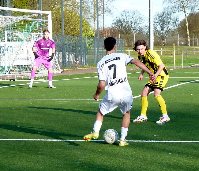 Den Grundstein zum Sieg gegen Sodingen legte Kaiserau in Halbzeit eins, wo man mit einem Doppelschlag zur frühen 2:0-Führung kam. Tarik Kurt – er ist ein Gewinn für den SuS – besorgte das 1:0 und Baran Yörük ließ zwei Minuten später das 2:0 folgen. Sodingen antwortete in Spielminute elf mit dem 2:1-Anschlusstreffer. Ein dritter Treffer blieb der Köhn-Truppe zunächst verwehrt, denn Lasse Schiedel stand vorher im Abseits. Besser postiert war dann Yörük, der wenig später zum 3:1 traf.