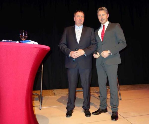 Bildzeile: Die Brüder Michael (li.) und und Andreas Tracz moderieren und ehren wieder verdiente Sportlerinnen und Sportler bei der Champions Gala am 28. November in der Unnaer Stadthalle.