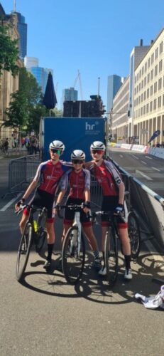 Den Anfang machten Nuria Müller, Mila Stier und Josefine Wendel beim großen Traditionsrennen in Eschborn-Frankfurt. Frühmorgens machten sie sich mit Trainer Tobias Müller in die Mainmetropole auf, um durch die Skyline von Frankfurt zu fahren. Vor einer atemberaubenden Kulisse vor dem Profirennen mit zahlreichen Tour de France-Fahrern konnten nur Nuria Müller, Josefine Wendel und ein weiteres Mädchen das hohe Tempo mit den gleichzeitig gestarteten Jungs mitgehen. Mit einem Stundenschnitt von fast 41 km/h ging es auf die Zielgerade. Im Finale fuhr Wendel soga rin die Top 10 der Jungs und wurde beste Jugendfahrerin, Müller belegte Rang drei.