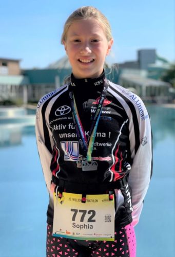 Sophia Erdelbrauck ging in Willich in einem Triathlon mit über 1.000 Teilnehmern bei den Schüler/innen an den Start und belegte den glänzenden zweiten Platz, wobei sie als gelernte Rennsportlerin auf der Radstrecke die Führung übernommen hatte.