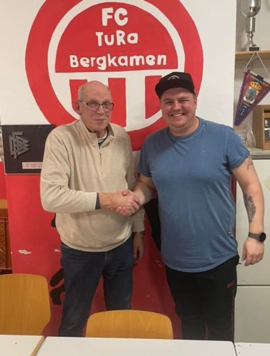 Bildzeile: TuRa-Vorsitzender Horst-Günter Siegmund verlängerte den Trainer-Vertrag mit Christopher Brügmann (re.) um zwei weitere Jahre / Foto TuRa.