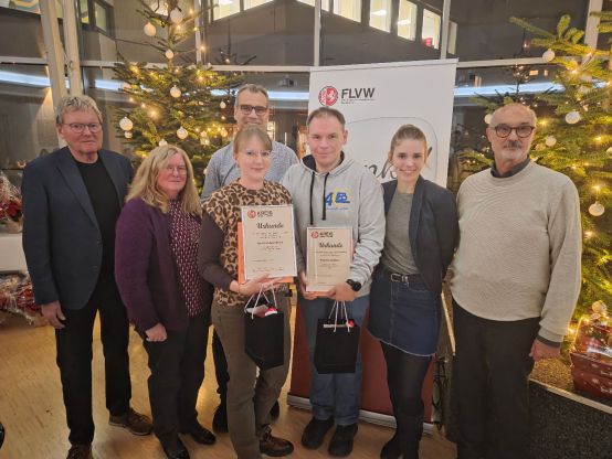 Bildzeile: Im Rahmen der Aktion „Danke ans Ehrenamt“ ehrten Friedhelm Wittwer und Bernard Dietz Menschen, die in ihren Vereinen etwas Besonderes leisten. So Thomas Berger, Brigitte Hönig, Mario Osterkamp, Diana Wolters, Robert Rak und Bork Wölm.