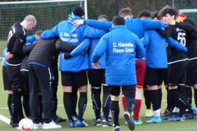 Bildzeile: Vor dem Anpfiff zum Heimspiel gegen Pelkum schworen sich die VfL-Fußballer auf einen Sieg ein. Am Ende stand ein 5:1-Heimerfolg.