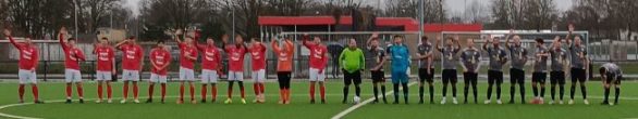 Bildzeile: Die SpVg Bönen (re.) und Gastgeber TuS Hamm begrüßen die Zuschauer vor dem Anpfiff.