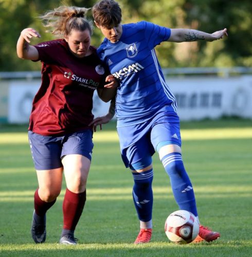 Bildzeile: Beim 12:0-Sieg des BSV Heeren in Billmerich traf Katja Elsen (re.) zum zwischenzeitlichen 6:0 / Foto Thorsten Niemann.