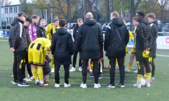 Bildzeile: Die Kaiserauer Spieler hören genau zu, welchen Matchplan der Trainerstab ihnen mitgibt für das Auswärtsspiel gegen Altenbochum.