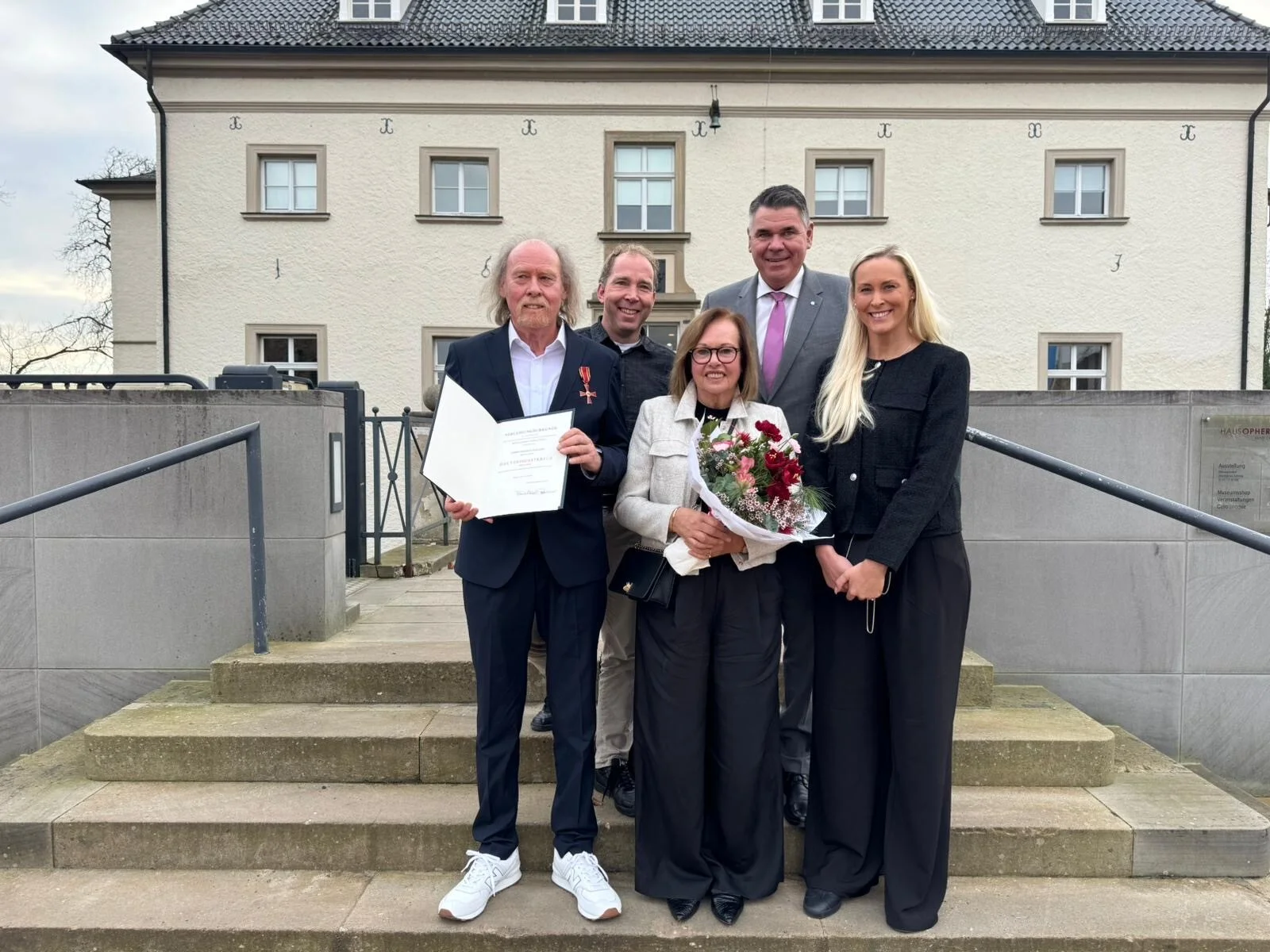 Große Auszeichnung für Friedhelm Klemp, HSC-Mitglied und Ex-Torhüter sowie heute noch „Edelfan“ des Holzwickeder SC, der kaum ein Heimspiel verpasst. Im Spiegelsaal auf Haus Opherdicke erhielt Friedhelm Klemp das Verdienstkreuz am Bande der Bundesrepublik Deutschland. Für sein jahrzehntelanges Engagement in der Kommunalpolitik und im sozialen Bereich überreichte Landrat Mario Löhr Klemp diese höchste Auszeichnung.
