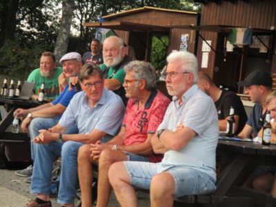 Bildzeile: Das HSC-Aufsichtsratsmitglied Rolf Unnerstall, Reiner Hoffmann und Heiner Steinhoff (r.) waren aufmerksame Zeugen des Spiels des HSC gegen den FC Gütersloh. Alle drei verbindet eine Gemeinsamkeit: Sie haben alle für den TuS Iserlohn, den heutigen FC Iserlohn, gespielt.