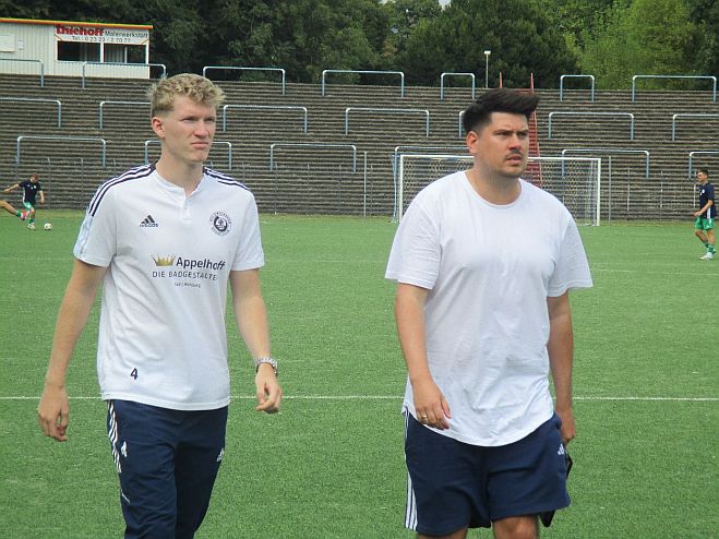 Bildzeile: Der derzeitige HSC-Teammanager Louis Petersmann (re.), hier mit Spieler Frank Adamski, wird zur neuen Spielzeit 26/27 in den Trainerstab des HSC als Co-Trainer rücken.