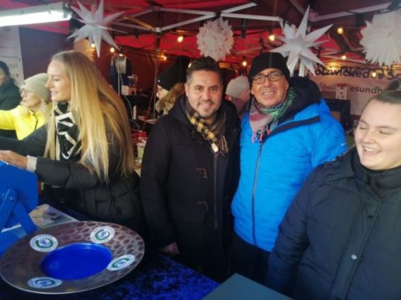 Bildzeile: Dienstverpflichtung für die HSC-Teams auf dem Weihnachtsmarkt. Hier mit Trainer Kurtulus Öztürk und dem HSC Vize, Thomas Feldhaus.