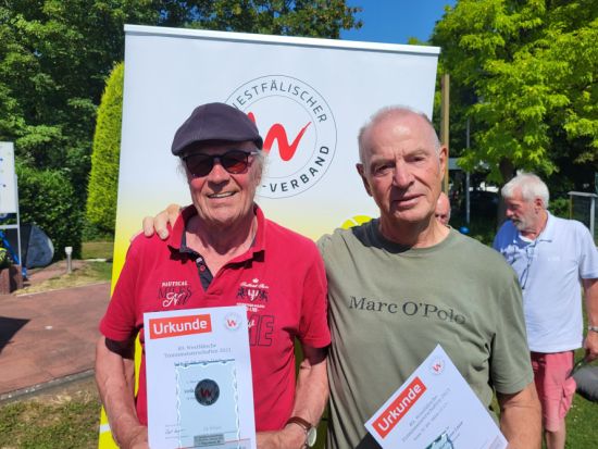 Bildzeile: Der Oberadener Hans-Hermann Leue (re.) belegte Platz zwei bei den Herren 80.