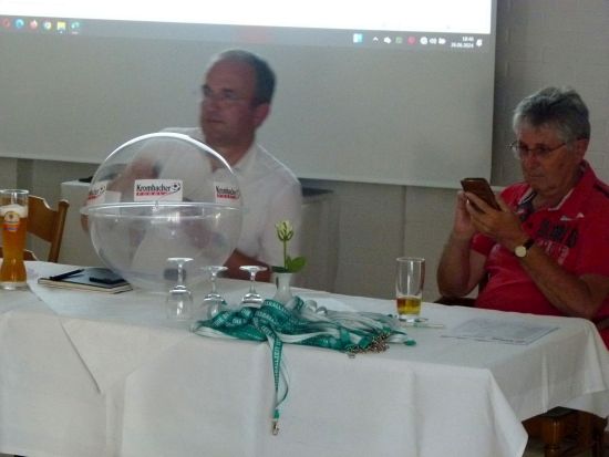 Bildzeile: Pokalspielleiter Friedhelm Wittwer  (re.) leitete die Pokalauslosung.