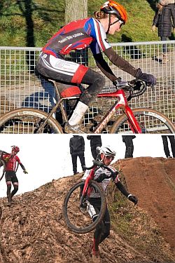 Bildzeile: Josefine (oben) und Tom Wendel bei der Deutschen Meisterschaften im Cyclocross in Bensheim/Hessen.