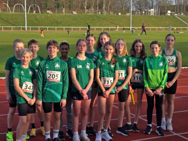 Im Weitsprung starteten Anton Nowak und Lisa Koch und belegten die Plätze 9 (Anton –3.64m) und 10 (Lisa – 4.20m).Auch in der Staffel präsentierte sich der SuS Oberaden stark. Das U14-Quartett mit HenriWinkelmann, Anton Nowak, Elias Katsigiannis und Noel Neuhaus sprintete in 57,64Sekunden auf einen guten fünften Platz. Die Staffel der U14-Mädels zeigte in derBesetzung Maja Schmidt, Amelie Zeidler, Lisa Koch und Zoe Meyer eine super Leistung,die für das Podium gereicht hätte, allerdings unterlief ein Wechselfehler, so dass sie nichtin die Wertung kamen. Das 2. Quartett mit Marie Töns-Rocklage, Lena Töns-Rocklage, Pauline Hartleib und Hannah Schley zeigte sehr sichere und schnelle Wechsel und kam in57.65 Sekunden auf einen guten 13. Platz.
