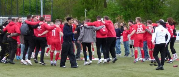 Bildzeile: Groß war der Jubel im RWU-Lager. Derbysieger, Derbysieger skandierte man ausgelassen.