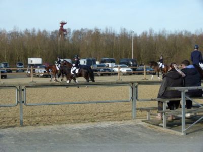 Bildzeile: Vor den jeweiligen Prüfungen in der Reithaller machten sich Reiter und Pferde auf dem Reitgelände „warm“