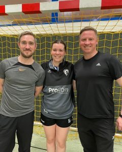 Bildzeile: Die SGH-Trainer Tim Severin (li.) und Sascha Rau waren sichtlich zufrieden mit Anna Hering, die neun Mal traf gegen Wetter. Nicht jedoch über die Niederlage.