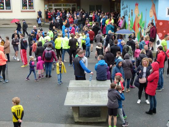 Pünktlich um 13.55 Uhr konnte der 1,2 km-Lauf mit 60 Kindern von Bürgermeister Dirk Wigand und Ulrich Dreischer gestartet werden. Um 14.00 Uhr dann der Start für die Hauptläufe. Erstmals wurde keine Startpistole sondern eine umweltfreundliche Starterklappe benutzt, die durch eine Verriegelung zur Erheiterung des Starterfeldes beitrug.