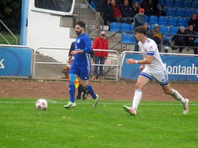 Bildzeile: Lokman Erdogan (li.), hier im Zweikampf beim 1:0-Erfolg des HSC im Hinspiel gegen Brünninghausen. Erdogan spielt eine ganz starke Saison beim HSC und ist nicht zu ersetzen.
