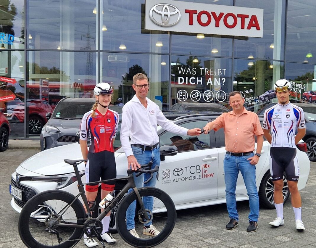 Toyota-Niederlassungsleiter Peter Müller überreichte Trainer Tobias Müller in Begleitung von den erfolgreichen Nachwuchsfahrern Josefine Wendel und Jonathan Müller den neuen Toyota Corolla. Die Tradition des Fahrzeug-Sponsorings durch Toyota hat schon eine 35jährige Tradition.