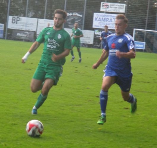 Schick gleich der Auftritt des HSC beim Auflaufen. Die nagelneuen grünen Warmmachtrikots sahen modisch elegant aus. Die Energie aus dem giftgrünen Outfit nahmen die Holzwickeder gleich mit ins Spiel. 17 Minuten waren gespielt, als Connor McLeod freigespielt wurde, er aber mit einem Schuss an Schürens Keeper Oliver Rolf scheiterte. Nach einem Pass nahm Andreas Spais den Ball auf und schoss über den BSV-Kasten (24.).