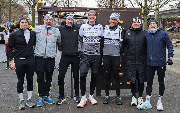 Bildzeile: Athletinnen und Athleten der Triathlon-Abteilung des TVG Kaiserau beim Unnaer Silvesterlauf.