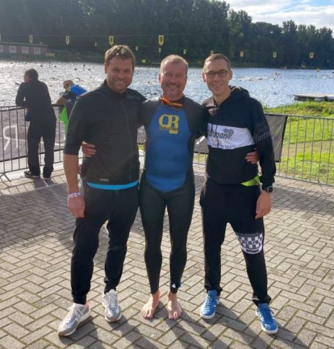 Das Staffel-Trio des TVG lieferte ebenfalls ordentlich ab. Spontan, aufgrund einer Verletzung, zusammengestellt, übergab Drewes nach dem Schwimmen auf Platz vier an den Radfahrer Timm Fanselow. Mit neuer persönlicher Bestzeit bewältigte der TVG-Athlet die zwei Runden auf dem Rad, nun galt es für Läufer Benjamin Wolbert die Staffel ins Ziel zu bringen. Der Dortmunder hatte Spaß auf der Strecke, auch die Regendusche tat der Stimmung keinen Abbruch. Im Ziel konnte sich das Trio über den zweiten Rang im Ranking der männlichen Staffeln freuen.