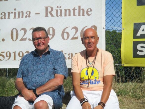 Bildzeile: HSC-Präsident Karl-Friedrich Lösbrock (li.) und „Vize“, Thomas Feldhaus (re.) appellieren an alle Fans, das letzte Heimspiel des HSC am Sonntag gegen Obersprockhövel zu besuchen. Das Team hat es angesichts einer stolzen Heimserie verdient. Und die Mannschaft braucht auch die Unterstützung angesichts eines verletzungsbedingt arg dezimierten Kaders.