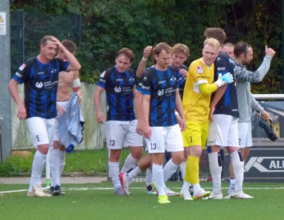 Bildzeile: Mit fast allen Mannen – selbst Torhüter Flemming Sandt war nach vorne geeilt – jubelte der KSV über das 3:1 in der 84. Minute.