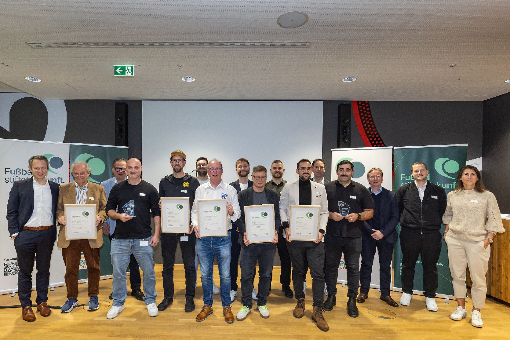 Bildzeile: Der SuS Rünthe wurde auf dem DFB-Campus in Frankfurt erneut ausgezeichnet mit dem Zukunftspreis 2025 des gemeinnützigen Vereins „Fußball stiftet Zukunft e. V.“. Nach 2023 erhält der SuS Rünthe diesen bundesweit vergebenen Preis zum zweiten Mal innerhalb von drei Jahren –