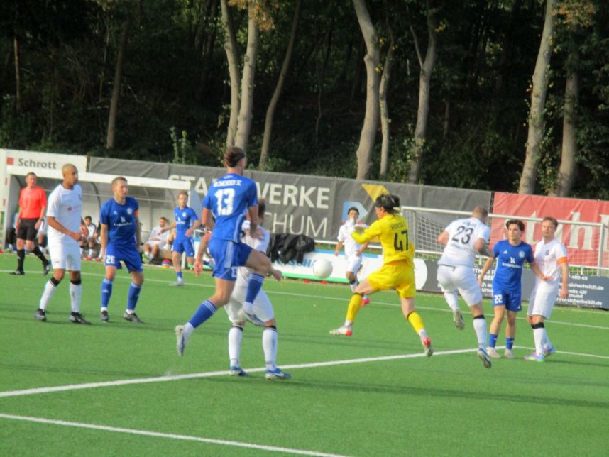 Bildzeile: Jan Nielinger (Nr. 13) ist gerade bei Standards im gegnerischen Strafraum immer ein Gefahrenpunkt – wie hier beim Remis am letzten Sonntag in Hordel.