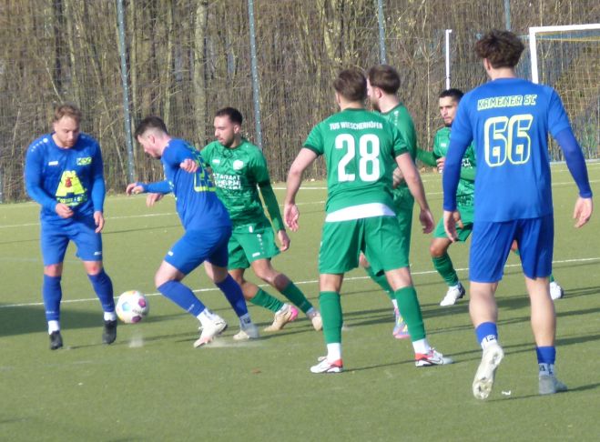 Ein Dreier für die Gastgeber zeichnete sich in dem ausgeglichenen Spiel zunächst nicht ab. Es war eine intensive Partie mit vielen Zweikämpfen zumeist im Mittelfeld und ohne Torgefahr. Das 1:0 resultierte dann in der 75. Minute nach einem „zweiten Ball“ durch Serhad Gün. Im ersten Anlauf scheitert er am Wiescherhöfener Schlussmann, erobert sich den Ball zurück, passt auf den zuvor eingewechselten Can und der trifft zur Führung. Es kam noch besser: Justin Braun legt sich in der 87. Minute den Ball rund 20 Meter vor dem gegnerischen Tor zum Freistoß zurecht und wuchtet ihn sehenswert in die Wiescherhöfener Maschen. Die Entscheidung.